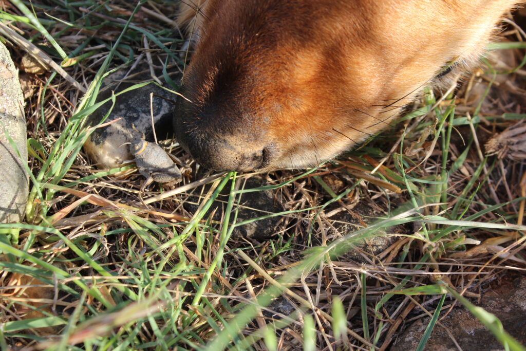 Methodology: Our approach leveraged the exceptional olfactory abilities of our conservation detection dogs, which are uniquely suited to locating such a small and cryptic invertebrate in its complex habitat. Our specialized detection dogs systematically surveyed designated areas within the Crau Plain. Trained to pinpoint the subtle scent signature of Prionotropis rhodanica, the dogs were able to identify areas of presence that would be nearly impossible to survey effectively through human visual searches alone, given the grasshopper’s masterly camouflage and limited mobility. The detection efforts directly supported the project’s broader objectives, contributing crucial information for mapping the distribution of remaining wild populations and identifying suitable areas for habitat restoration and potential reintroduction efforts.